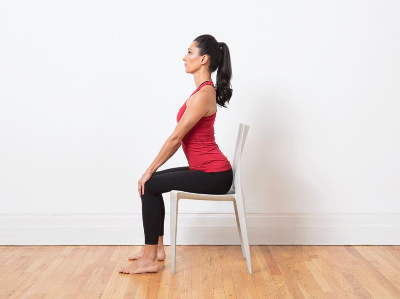 Bước 1: Ngồi thoải mái trên ghé, giữ lưng và cổ thẳng