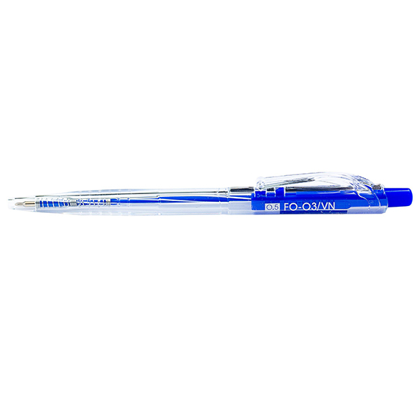 Bút bi Thiên Long FO-03 là sản phẩm có nguồn gốc từ Việt Nam, đây là dạng bút bi bấm với phần vỏ được sản xuất từ nhựa cứng trong suốt với hình dạng thon dài, đầu bi nhỏ gọn 0.5mm giúp nét chữ của bạn gọn gàng và sắc nét.