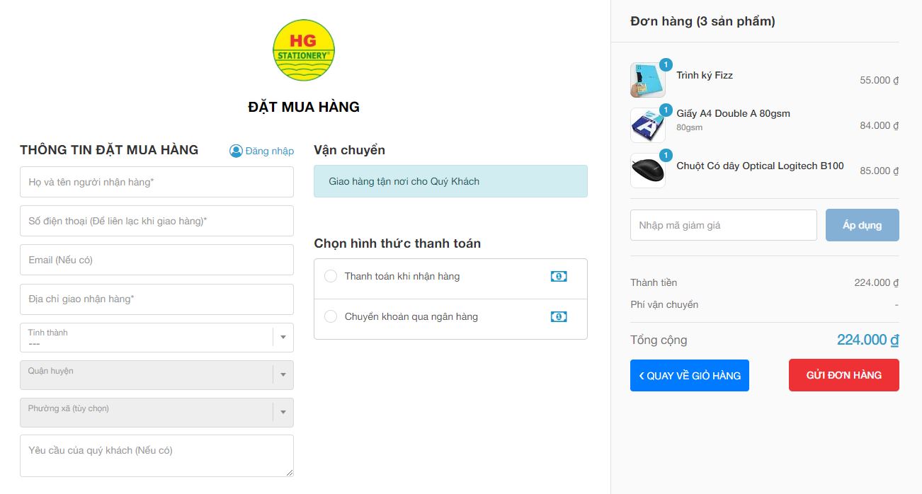Sau khi Quý khách kiểm tra lại giỏ hàng :
