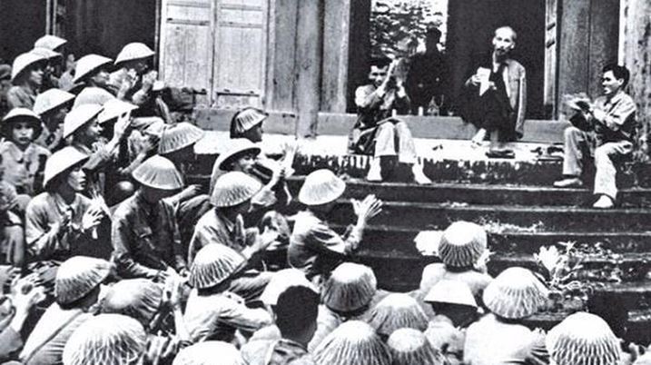 Đọc xong mỗi câu thơ, Bác lại bảo chúng tôi đồng thanh nhắc lại. Cuối cùng Bác